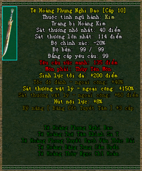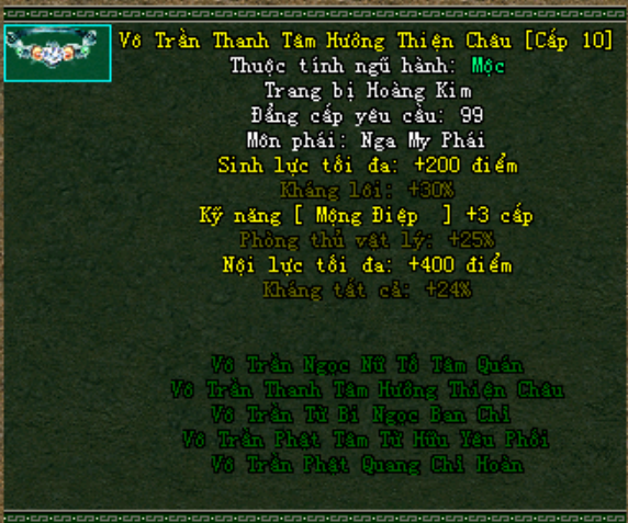 Danh sách trang bị hoàng kim môn phái max anh em tham khảo, lưu ý hình ảnh chỉ mang tính chất minh họa, khi anh em mở ra sẽ ngẫu nhiên thuộc tính.