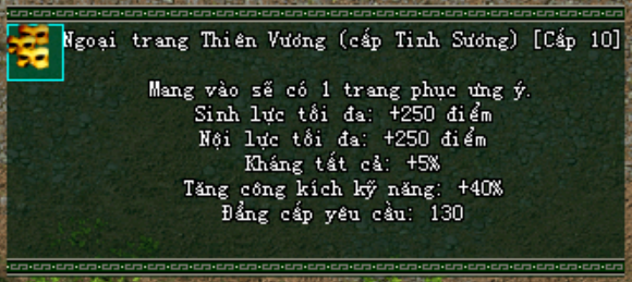 Đặc biệt: Không thể sử dụng trong thành, ngẫu nhiên xuất hiện boss tại vị trí mở, boss là đại cao thủ mang theo nhiều vật phẩm quý giá, kinh nghiệm, nhưng boss cũng sở hữu võ nghệ không địch thủ, các đại hiệp hết sức thận trọng.